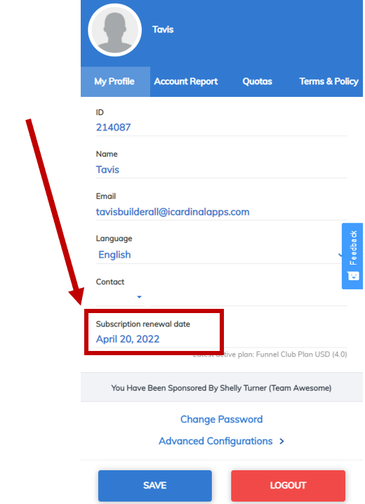 To find out when your next payment is due, go to "Account" in the top menu in the Builderall dashboard.