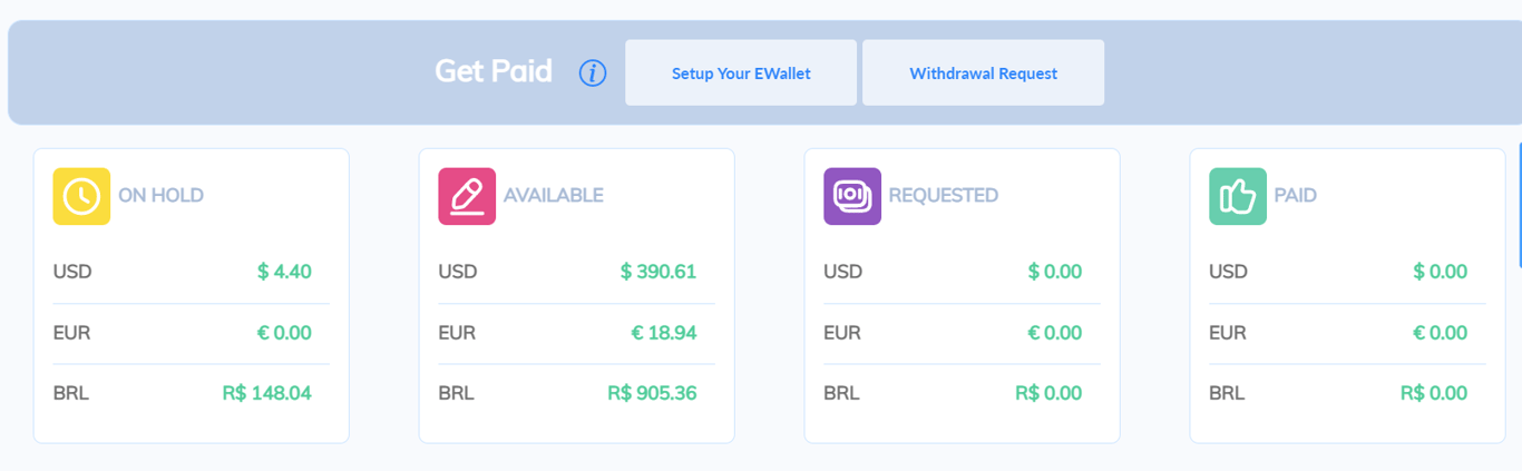 REQUESTED - this box shows the total commissions that you have requested for withdrawal to your eWallet account. Once you request a withdrawal, it will be queued for withdrawl on the next Thursday (payments are made every Thursday).