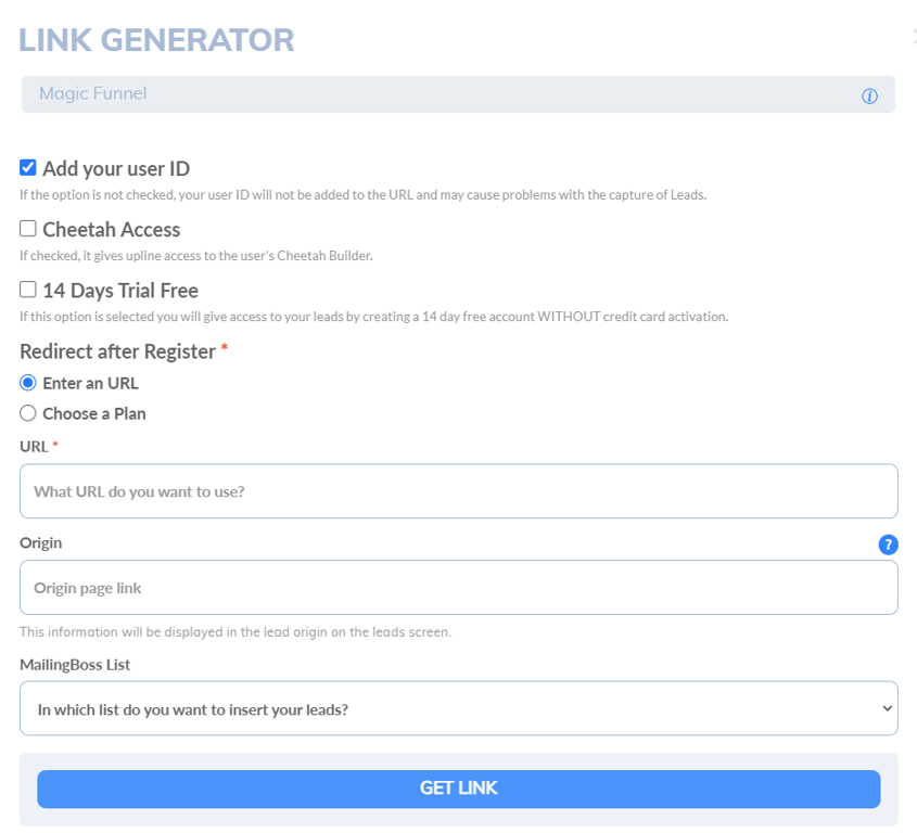 To create the Magic Funnel link for the magic form in Cheetah, you can use the Magic Funel tool.