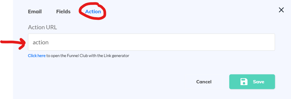 To to the ACTION tab on the form settings. Paste the special link in the ACTION tab of the Magic Form in your Cheetah website.