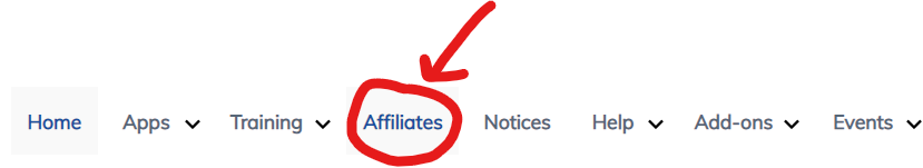 Go to the top menu in the Builderall dashboard and click "Affiliates"