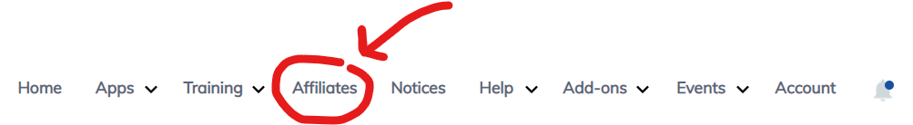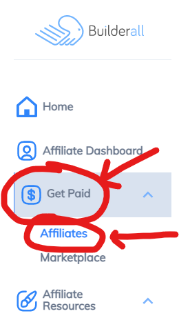 On the affiliate menu on the left side of the dashboard, choose "Get Paid" and then "Affiliates"