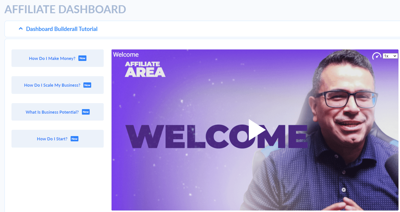 This will take you to the affliate dashboard where you can access all of the reports and tools available to you as a Builderall affiliate. You can get started by watching the videos available on the Affiliate dashboard.