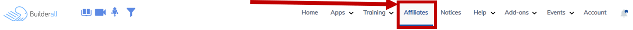 Congratulations on becoming an affiliate for Builderall. To get started, you will need to access the affiliate area of the dashboard. Click "Affiliates" on the top menu.
